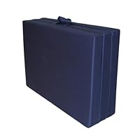 Flexible and comfortable, this Tri-Fold Hide-A-Mat from American Furniture Alliance performs a wide range of functions. Use the mat for stretching or Pilates exercises or pull out it for an extra bed. Lightweight, yet firm, the mat folds up in thirds for compact storage while an attached handle renders it portable for camping or a sleepover party. The mat features double-stitched poly cotton construction, with double-overlap folded seams for durability. Easy to care for, spot clean the mat with a damp cloth. A set of standard twin-sized sheets fit the mat to protect its stitched-on cover and offer sleeping ease. Made in the USA, the mat comes in queen, junior twin, and this adult twin, and with navy, black, hunter green, burgundy, and sand covers. A limited one-year manufacturer's warranty covers this item. The hide-a-mat measures 75 inches long by 39 inches wide by 3-1/2 inches high lying flat, and 39 inches long by 25 inches wide by 11 inches high when folded up.
